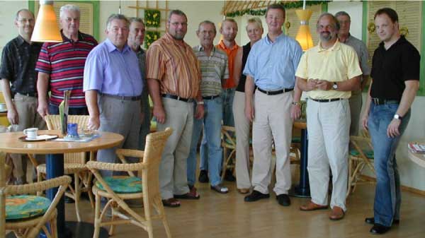 Papenburg, 04.08.2003: Auf Vermittlung von Hans-Werner Gouterney besuchten die SPD-Fraktion aus Papenburg und SPD-Fraktionsmitglieder des Ortsrates Aschendorf das Gewerbegebiet an der Rheder Straße. Neben der Besichtigung des Schuhhauses Klahsen sprachen die Besucher mit Klaus Niesmann der Firma Niesmann Multimedia und Heinz Lampe der Firma Küchentraum über die aktuelle Situation des Gewerbegebietes.