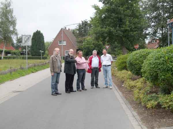 Papenburg, 09.08.2009: Die SPD spricht sich für Maßnahmen an der Straße „An der Marienkirche“ am Kindergarten St. Marien aus, um eine Verkehrsgefährdung vor dem Kindergarten zu verhindern. Auf Anregung von Bewohnern der Straße „An der Marienkirche“ hat Ludger Husmann seine SPD-Fraktionskollegen zu einem Ortstermin eingeladen, um sich ein Bild von der Verkehrssituation vor Ort zu machen. Dabei wurde deutlich, dass für Kinder des Kindergarten St. Marien durchaus eine Verkehrsgefährdung besteht. Die Straße besteht vor dem Kindergarten aus einer geraden Strecke, die breiter ist als die Straße in der Siedlung. Die SPD-Fraktionsmitglieder konnten beobachten, dass Autos mit Beginn dieser geraden Strecke beschleunigen und die gerade breiter ausgebaute Straße dazu verleitet, schneller als die vorgeschriebenen 30 km/h zu fahren. Außerdem konnten die SPD-Fraktionsmitglieder feststellen, dass die Büsche direkt vor dem Kindergarten durch ihre Höhe dazu führen, dass Kinder, die den Kindergarten verlassen von Autofahren nicht rechtzeitig wahrgenommen werden können. Die Ratsmitglieder empfehlen, diese Büsche zu entfernen und das Gelände vor dem Kindergarten nur mit niedrig wachsenden Pflanzen oder Bodendeckern zu bepflanzen. Außerdem regen die SPD-Mitglieder an, auf der Straße Schwellen aufzubringen, um das Tempo zu reduzieren und ein Hinweisschild auf den Kindergarten aufzustellen. Bei ihrem Ortstermin wurden die SPD-Ratsherren von Anwohnern auf einen weiteren Missstand aufmerksam gemacht. So befindet sich ein Fußgängerrundweg hinter den Wohnhäusern in einem so schlechten Zustand, dass er nicht mehr genutzt werden kann. Er ist stellenweise zugewachsen und statt eines Schotterweges wächst auf dem Weg hohes Grass. Die Genossen versprachen, an die Stadt heranzutreten, damit der Weg wieder frei geschnitten wird.